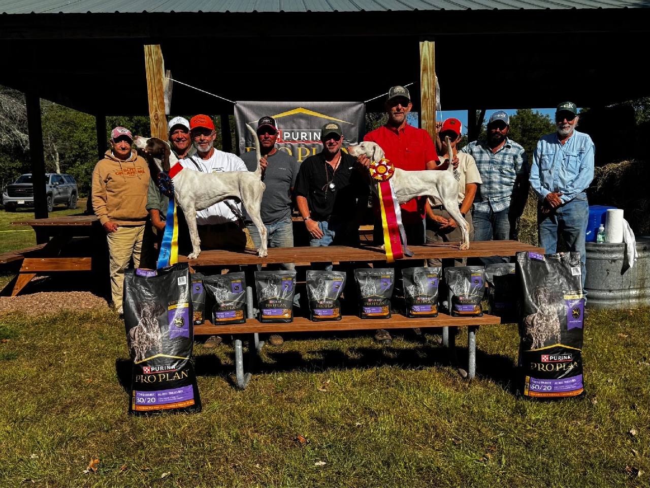 Open Shooting Dog winners, l to r, 1sr - Clearcut Uptown Holly, GSF; owner, Kent Tomlinson & Jane Schillie, 2nd – Bama’s Riptide, PM; owner Edwin Cooley, and 3rd – Hackberry’s Bright Rose, PF; owner Brian Kennedy