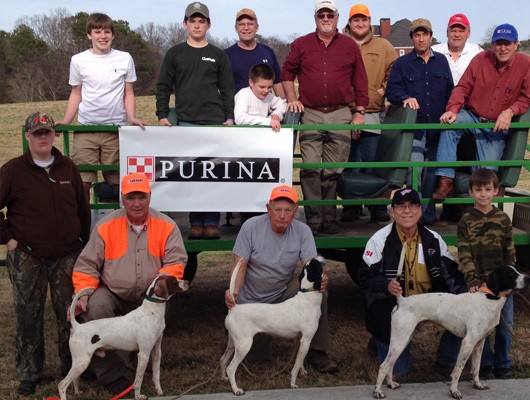 The Tallapoosa Field Trial Club hosted its third and final trial for the current season on Feb. 22nd the home of Marty and Linda Robinson. We had beautiful weather for the trial and it appeared all in attendance thoroughly enjoyed the experience. There is just not many things as enjoyable as seeing the sunrise over well-manicured field trial grounds hearing the call of the early morning quail and the barking dogs that will soon be unleashed in pursuit. The scurrying about of handlers and the prancing around of a fine field trial horse gets my blood flowing lie nothing else. We are truly blessed to have the opportunity to enjoy such a great sport full of the camaraderie and each and every element making up a field trial. We are so proud to be a National Bird Hunter Club and we are so proud to be supported by such wonderful national sponsors who make all this possible. Purina Pro Plan is so important to our organizations and the feed they produce really shows itself in the performances of the dogs that get their nutrition and energy from that product. Garmin is another sponsor who provides significant support to the NBHA and I believe every dog turned loose at the trial was adorned with a Garmin tracking collar. Rounding out our national sponsors who are so important to us are Gundog Supply and Christie Enterprises.