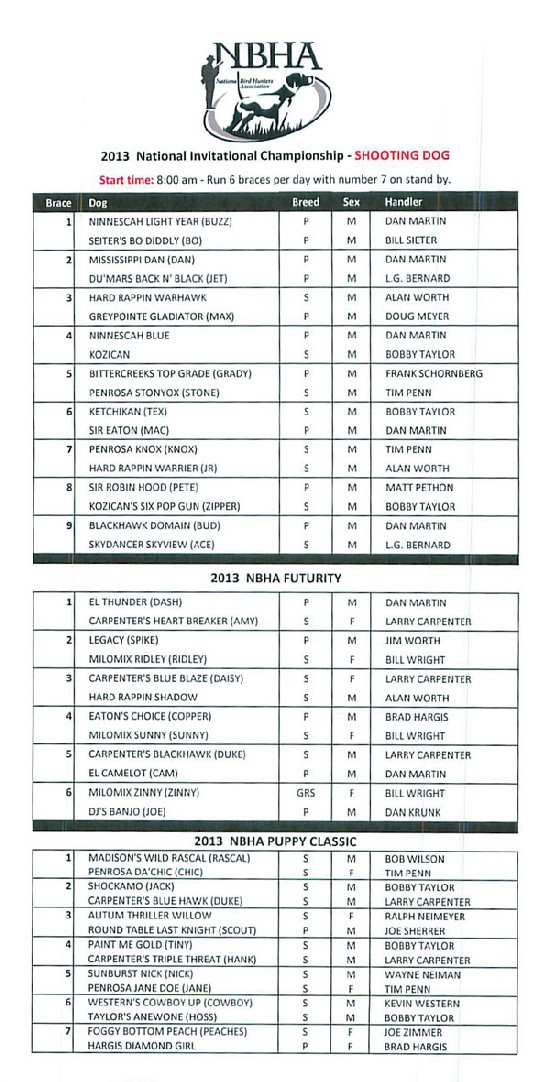 2013 NBHA Nat'l Open Ch. "Running Order"
