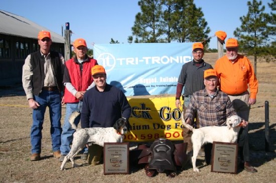 Congratulations to Robert Ecker and Mike Branscum for handling the winners of the NBHA North Central Regional Championship. Robert handled John Everett's Honky Tonk Gigolo, PM in the 16th brace to the title in the 33 dog stake. Gigolo had five finds and a strong up front race to annex this title at the Percy Priest WMA near Nashville, TN. This win gives John's dog a big lead for the NBHA Open Shooting Dog of the Year points race as well.