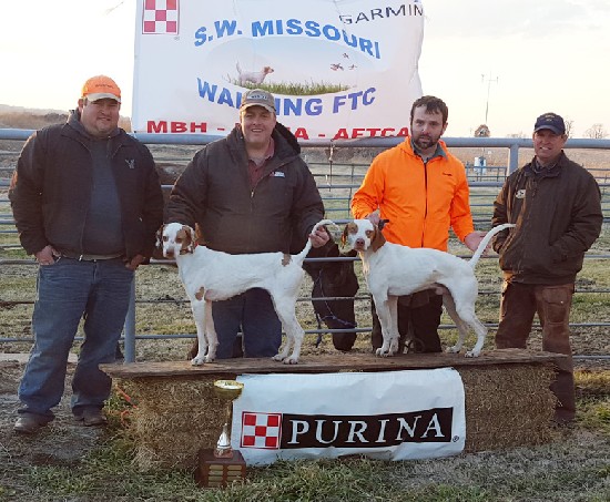 Winners (pictured) in the NBHA Open Invitational Breeders Championship was Champion Rocky Hollow Big Time, PM owned by Brian Casey and handled by Oscar Whitt. Runner-up Champion was Texas Honey Bee, SF owned by Kevin Klein and handled by Garry Malzone. Judging this stake was Tony King and Jerry Haley.