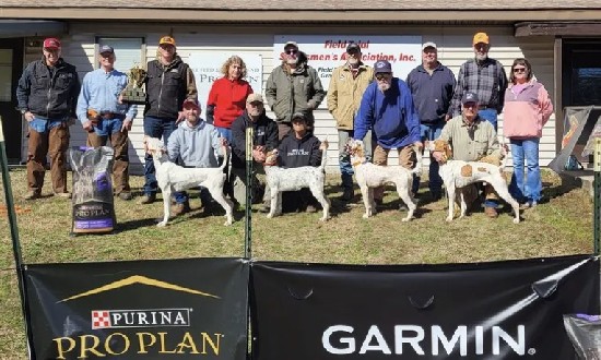 2025 Futurity, Breeders Championship and Jerry Kilgore Puppy Classic was held again at the Sportsman's Association grounds near Grove Springs Missouri. The cover was not as thick this year as in past years but it was absolutely sufficient. These grounds are so nice to watch our dogs hit the lines and move forward. The grounds have plenty of outside kennels, horse stalls, electric hookups. The bunkhouse has separate judging rooms, plenty of bunk beds, fully functioning kitchen, restrooms and hot showers. These things are more than adequate for a bird dog guy. We drew a total of 118 dogs for all three classes. This is a record for me. I would like to thank our handlers for their consideration of the workers, judges, and other handlers being on the line ready to go. It is so important to getting all these Braces done in a timely manner. This year's Breeders Championship had 53 dogs entered. We had to start on Tuesday planning seven braces a day with number eight on standby. Our judges Howard Burbach and Brian Kennedy endured many hours in the saddle and some very harsh weather. Thank you, two gentlemen so much. This is also my first trial that I heard no complaining. So, I guess our judges get a pat on the back for this one.