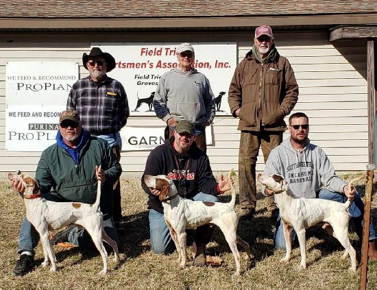 This year's National Breeders Invitational Championship was held on the beautiful grounds of the Grovesprings Sportsmans Association in Grovesprings Missouri. We drew 36 dogs for this championship and started Wednesday February 15th. Our judges for this year were Mark Livingston from Central City Iowa and Ken Chenoweth from Fairgrove Missouri.