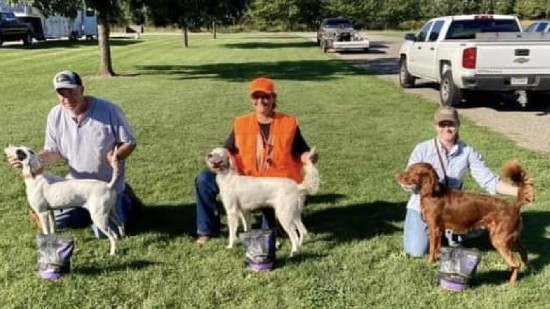 East Central Illinois Pointer and Setter Club hosted their trial on September 25 pictured from the left is Jeff Hainline with Hainlines Silver Star, Elizabeth Blair with Woodsways Whippin Winter and Amy Ganthier with Cedar Creek Braden.