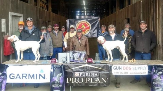 Pictured is Three Kansas Takin a Chance, the 1st place Open Shooting Dog and 1st place Amateur Shooting Dog winner.