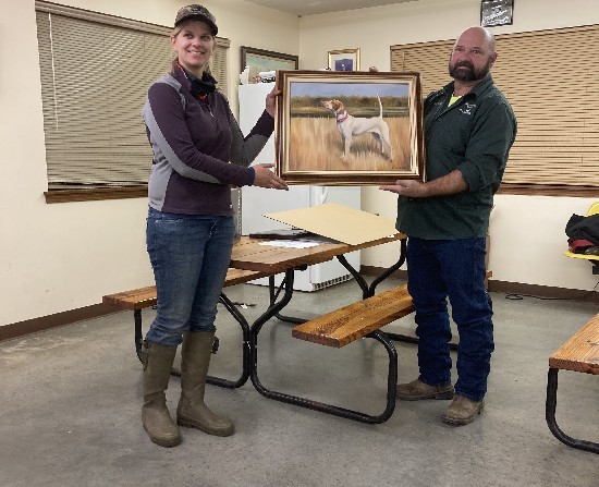 The Mary Andrews McPherson painting for the 2019-2020 Amateur Invitational Champion Hirollins Easy Money, owned by Warren Parrott of Scranton, SC. Beautiful painting was presented by Trial Chairman Jim Ogle to Lindsay Cummings at the 2020-2021 Amateur Invitational Championship.
