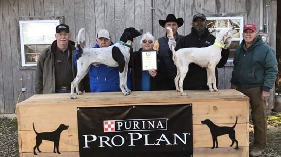 2020 National Championship was a tremendously successful event. Great hosts in west Tennessee, unbelievable support of our auction and excellent fellowship. Thank you to our sponsors Purina, Garmin, Mule Clothing, and Gun Dog Supply, and Gun Dog Central. Also to Ross Callaway for bird planting, Blake Kukar for the grounds, and the WTFTC for your hospitality. Special thanks to our judges Harold Woodward of Vilonia, Arkansas and John Hott of Hoopeston Illinois.