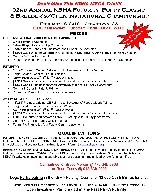 NBHA MEGA TRIAL - You don't want to miss this one...February 15, 2018, over $14,500 in Cash and Prizes.