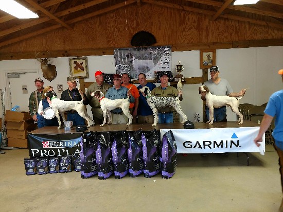 Amateur Derby started the trial off on Saturday March 3, 2018 at 8am in Glenwood, Georgia. There were six entries who all finished nice runs. Third place went to an English setter male named kilo owned and handled by Jim Broadnax. He ran in the first brace against the English pointer female who won second. Chelsie Conroy ran and owns the bitch named Millie. It was a competitive race with the female having 3 nice finds, while the setter and Broadnax had 2. The winning dog was Kentucky Sundown, a pointer female, owned and handled by Chelsie Conroy who also had 3 finds but had a better handle than Conroy’s other bitch making the judges jobs easy to place her first.