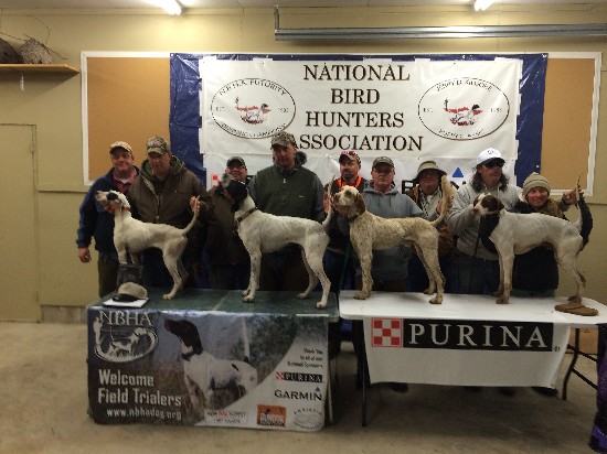 NBHA 30th Futurity and 29th Jerry D. Kilgore Puppy Classic held its annual event on March 19 � 20 at the Whetstone Creek Conservation Area near Williamsburg, MO. This is the fourth year that this event has been held here in central Missouri. This event is led by Futurity chairman Kevin Western with the help of Tim Penn, Larry Carpenter, Joe Zimmer, and Jim Ogle. This team is engaged throughout the year making plans, promoting the program and encouraging breeders to nominate litters for this event. We are fortunate to have a winning combination of good grounds, good birds, good judges, and of course great breeder support with their nominated litters.