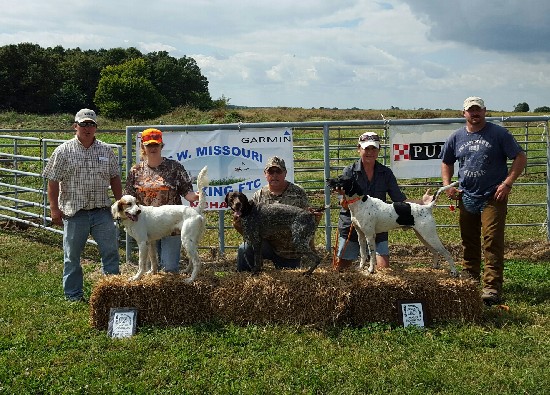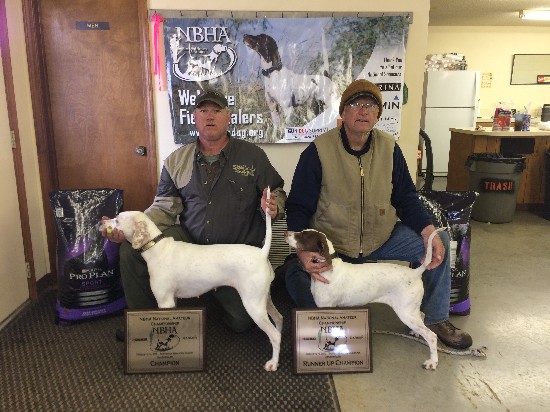 The 2015 NBHA Midwest Regional Championship sponsored by the Missouri Bird Hunters Association concluded on Dec. 6,2015 at the Greenwood Pointe Hunt Club in New Franklin, MO. The trial, hosted by the Missouri Bird Hunters Association, drew a good entry of 27 Shooting Dogs, 6 Derbies and 6 Puppies. Named Champion was Blackhawk's Flight Risk, Pointer male owned by Marty Meyers Blue Springs, MO and handled by Harold Gearhart, Kingsville, MO. Runner up went to Rebellious Rotten Ralph, English Setter male owned and handled by Mike Luebke, from Reeseville, WI. Whenever you schedule a trial in central Missouri in Dec., you always worry about the weather. On all 3 days the weather was great; mid 30's in the morning and low 50's in the afternoon; with plenty of sunshine. Anytime you put on a trial you need to have good grounds, good birds and good judges. You also have to have a lot of good help and I had some outstanding help. I would like to thank Joe Zimmer, Chris Gebhardt, Danny Martin, Danny Draffen, Dan Crunk, Kevin Western, Tim Penn and Jim Wirths for all their help.