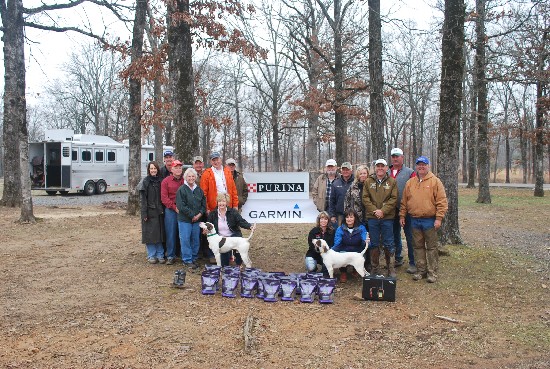 The Tallapoosa Field Trial Club hosted its third and final trial for the current season on Feb. 22nd the home of Marty and Linda Robinson. We had beautiful weather for the trial and it appeared all in attendance thoroughly enjoyed the experience. There is just not many things as enjoyable as seeing the sunrise over well-manicured field trial grounds hearing the call of the early morning quail and the barking dogs that will soon be unleashed in pursuit. The scurrying about of handlers and the prancing around of a fine field trial horse gets my blood flowing lie nothing else. We are truly blessed to have the opportunity to enjoy such a great sport full of the camaraderie and each and every element making up a field trial. We are so proud to be a National Bird Hunter Club and we are so proud to be supported by such wonderful national sponsors who make all this possible. Purina Pro Plan is so important to our organizations and the feed they produce really shows itself in the performances of the dogs that get their nutrition and energy from that product. Garmin is another sponsor who provides significant support to the NBHA and I believe every dog turned loose at the trial was adorned with a Garmin tracking collar. Rounding out our national sponsors who are so important to us are Gundog Supply and Christie Enterprises.