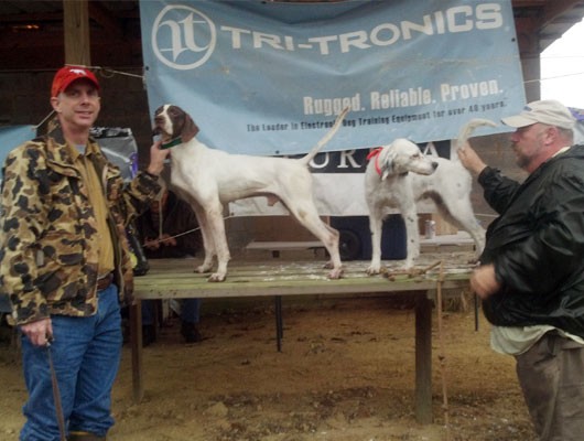 On February 18, 2013, the Fishing Creek Bird Dog Club held the NBHA of Kentucky Open Derby Classic at the Mike Branscum Farm in Nancy, Kentucky. Two accompanying stakes were also held – Open Shooting Dog and Open Puppy. There are many good people to thank, Mike and Linda Branscum for their hospitality. Joe Cammisa and Ken Taft for Judging, Red and his son Levi for helping in any way they could. We could not forget Jim Humphrey and his efforts to make this possible. We had a very successful trial with 59 entries from 8 states. The many owners and handlers cannot be forgotten because without them you can’t have a trial.