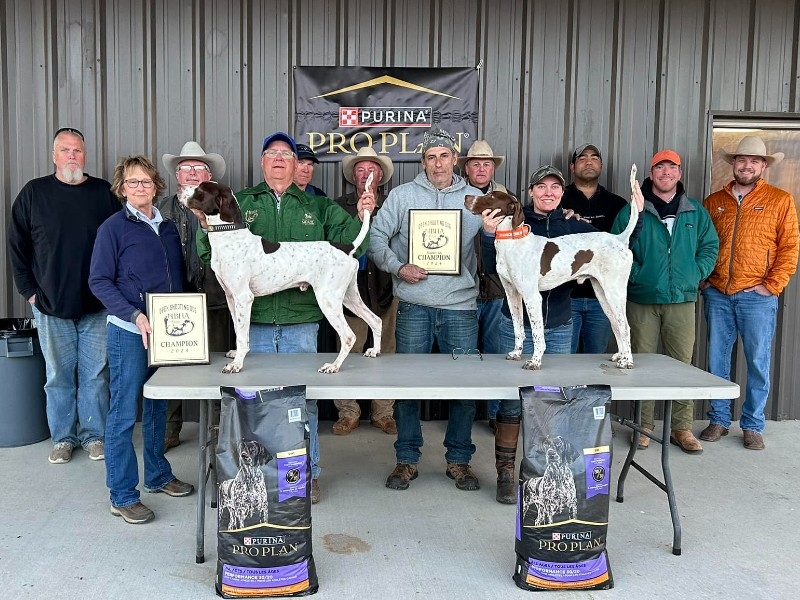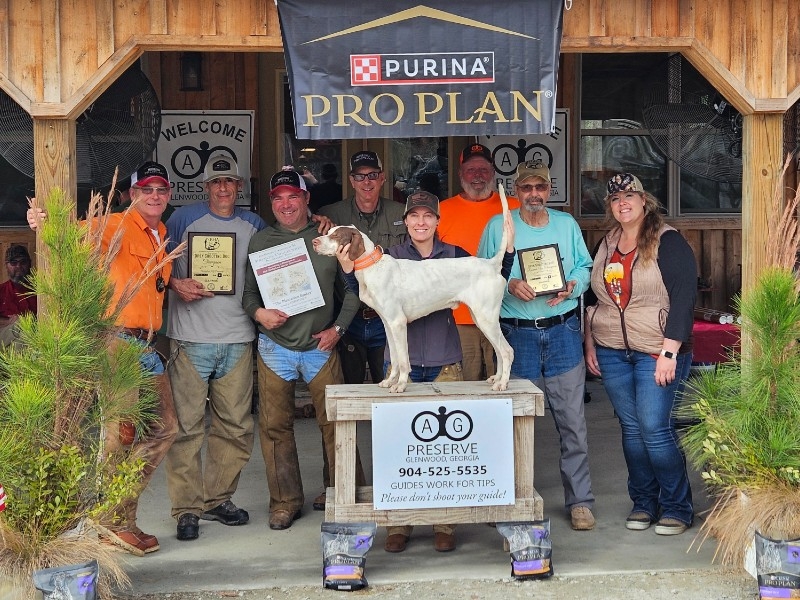 Pointer male PURE CONFIDENCE (call name "Tango") starts off the NBHA Championship circuit with a win for owners Black Meadows Kennels and Indian Creek Kennels professional handler Garry Malzone in the 2023-2024 Southern Regional Championship at the AG Preserve in Glenwood, Georgia.